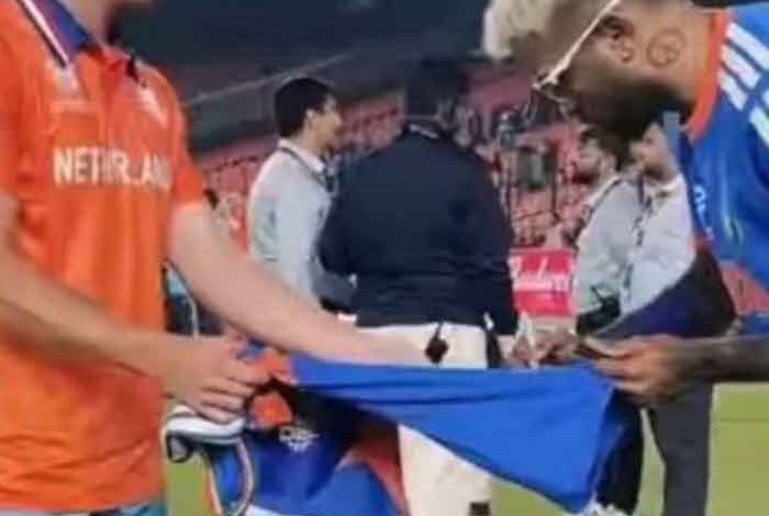 अहमदाबाद के नरेंद्र मोदी स्टेडियम में भारत और नीदरलैंड्स के बीच खेले गए टी20 वर्ल्ड कप 2026 के मुकाबले के बाद एक बेहद भावुक पल देखने को मिला। भारतीय टीम के स्टार ऑलराउंडर हार्दिक पांड्या ने नीदरलैंड्स के स्टार ऑलराउंडर बास डी लीडे को अपनी साइन की हुई जर्सी उपहार में दी।