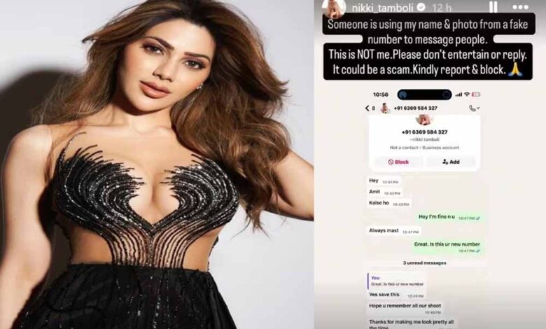 बता दें कि निक्की तंबोली ने अपने सोशल मीडिया पर दावा किया है कि उनके नंबर और तस्वीरों का यूज करके कोई लोगों को ठगने की कोशिश कर रहा है. कोई उनका नाम लेकर उनके करीबियों को कॉन्टैक्ट कर रहा है. ये निक्की नहीं है. निक्की ने कहा – ये इंसान मैं नहीं हूं. प्लीज आप लोग इस शख्स पर ध्यान न दें. इस शख्स को रिप्लाई न करें. ये एक स्कैम हो सकता है. इस नंबर से टैक्स आते ही इस नंबर को ब्लॉक कर दें. एक्ट्रेस ने ये बात अपने इंस्टाग्राम की स्टोरी पर लिखकर शयर किया है.