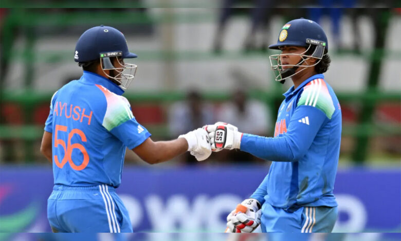 भारत को पहला झटका एरॉन जॉर्ज के रूप में लगा है। उन्हें मजाई ने पांचवे ओवर की पहली गेंद पर जॉर्ज को आउट किया। जॉर्ज ने 16 गेंदों में दो चौकों और एक छक्के की मदद से 23 रनों की पारी खलेी। उन्होंने वैभव सूर्यवंशी (19)* के साथ 41 रनों की साझेदारी की। सूर्यवंशी का साथ देने कप्तान आयुष म्हात्रे आए हैं।