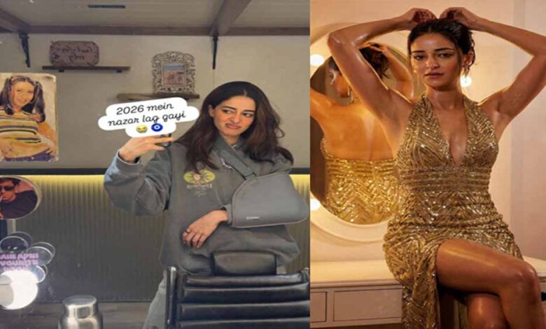 बॉलीवुड एक्ट्रेस अनन्या पांडे ने अपनी वैनिटी वैन से एक मिरर सेल्फी शेयर की। इस मिरर सेल्फी में फैंस को उनके पर्सनल वैनिटी स्पेस की झलक मिली और साथ ही यह भी पता चला कि वह फिलहाल एक चोट से रिकवर हो रही हैं। अपने सोशल मीडिया अकाउंट पर शेयर की गई तस्वीर में, एक्ट्रेस ग्रे ओवरसाइज्ड हुडी पहने और हाथ में स्लिंग लगाए दिखीं, जिससे पता चला कि उन्हें चोट लगी है। उन्होंने तस्वीर पर एक स्टिकर लगाया था जिस पर लिखा था, '2026 में नजर लग गई।'