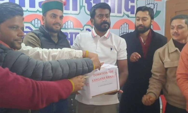 सांसद कंगना रनोट को लेकर मंडी में सियासी बवाल, युवा कांग्रेस ने चंदा अभियान चलाकर किया विरोध प्रदर्शन
