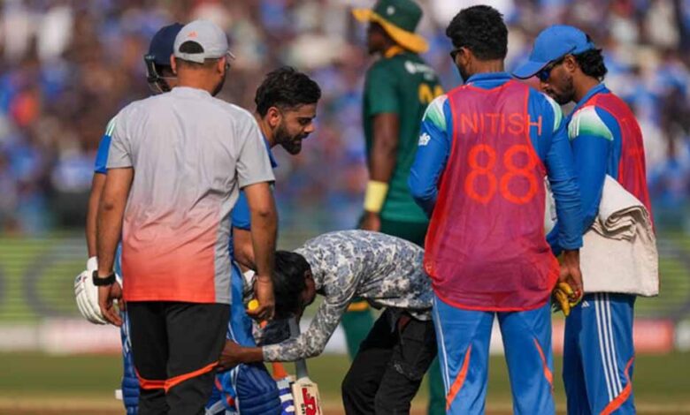 मैच में सुरक्षा पर सवाल: रायपुर में प्रशंसक विराट के पास पहुंचा , छुए पैर