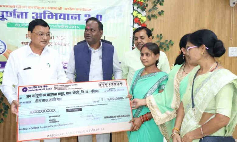 मंत्री देवांगन द्वारा शपथ दिलाई गई, स्व सहायता समूहों को चेक का वितरण