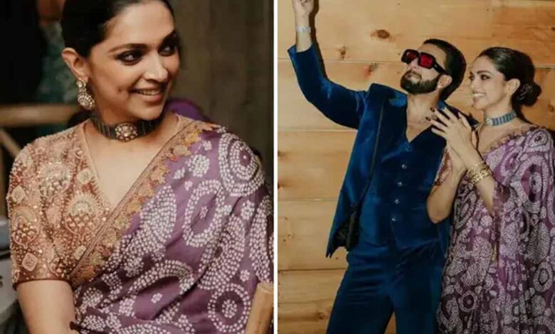 वहीं दीपिका पादुकोण हमेशा की तरह क्लास और एलिगेंस की मिसाल दिखती हैं। उन्होंने गहरे बैंगनी रंग की प्रिंटेड साड़ी पहनी है, जिस पर खूबसूरत डिजाइन बने हैं। लो बन हेयरस्टाइल उनकी शार्प फीचर्स को उभारता है। स्टेटमेंट चोकर, चूड़ियां और हल्की रिंग्स उनकी जूलरी को खास बनाती हैं। सॉफ्ट मेकअप और ग्लोइंग स्किन के साथ उनका लुक बेहद सिंपल, ग्रेसफुल और शादी के लिए एकदम परफेक्ट है।