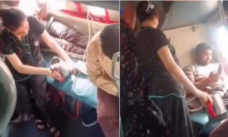 लोअर बर्थ पर चाय बनाने वाली महिला का वीडियो वायरल, ट्रेन में बनी ‘किचन’